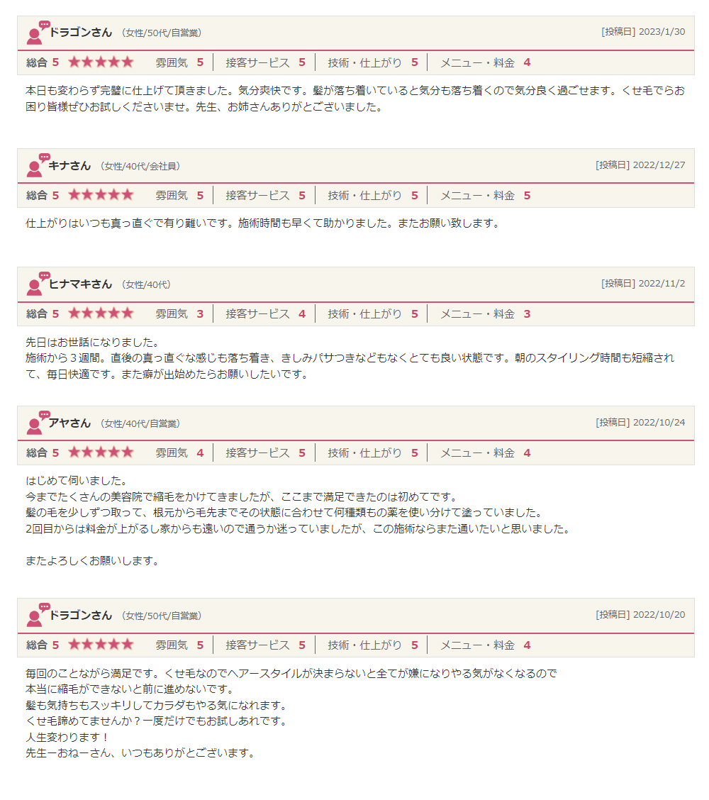 ドリームルームのくせ毛革命の様々な事例